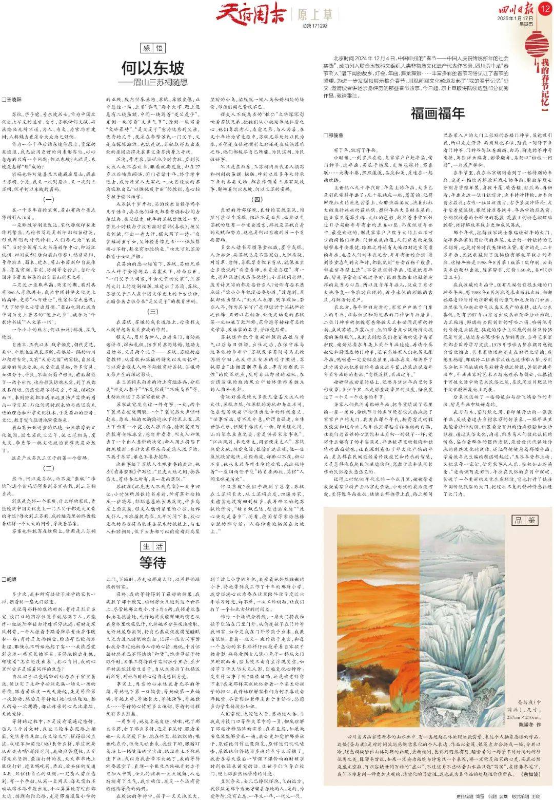 何以东坡?我似乎找到了答案。苏轼在三苏祠长大,从三苏祠出发,四海为家,生前再也没有回到故乡。我耳畔又响起苏轼的诗句,“故乡飘已远,往意浩无边”“此心安处是吾乡”。还有,德国哲学家海德格尔说的那句话:“人要诗意地栖居在大地上。”