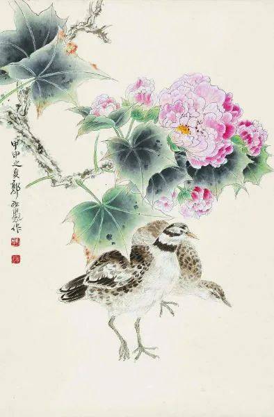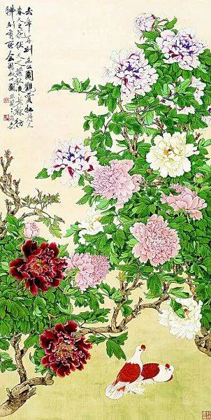 牡丹双鸽图(中国画)于非闇 作(图源:光明日报)