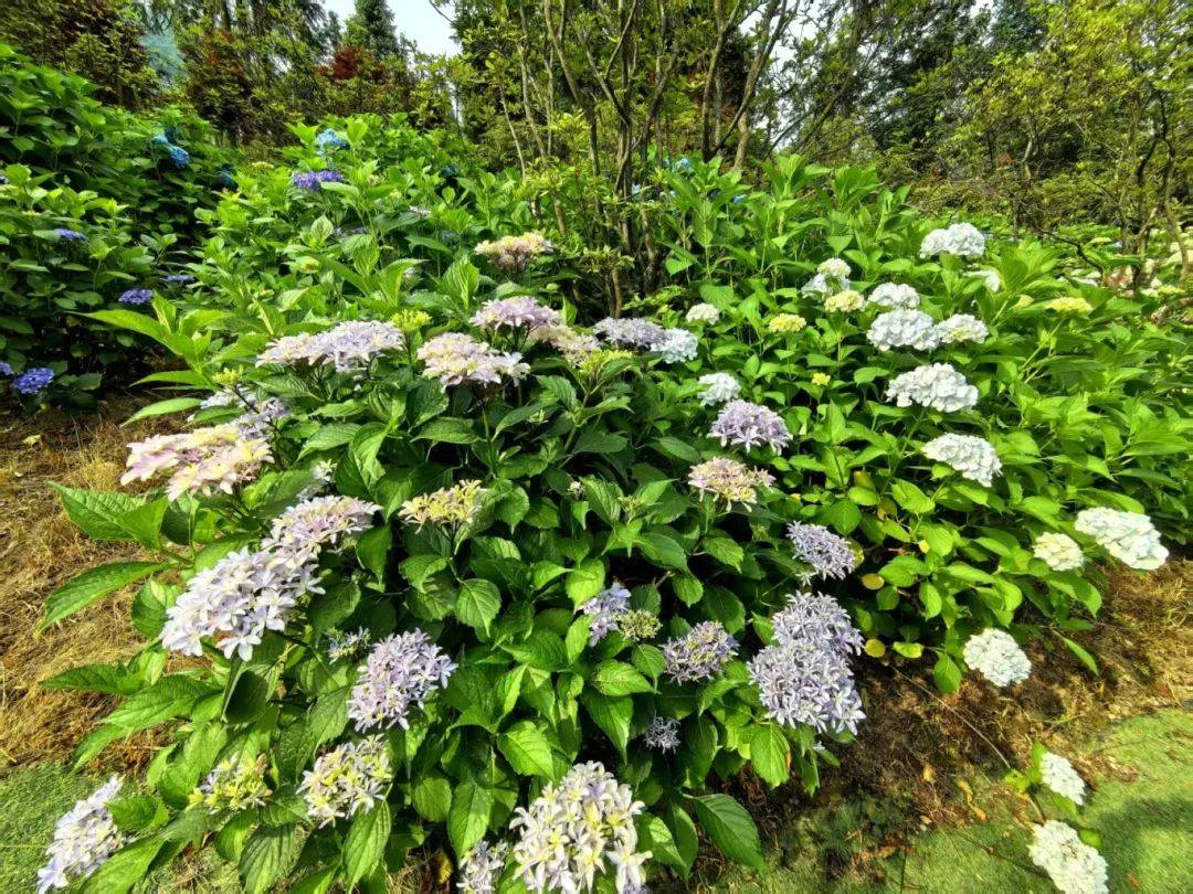 我也跟随如蚁的人流来到了无忧谷。青翠的绿色像波浪一样,盖过一条条俯冲而下的山坡;微风掠过肌肤,如丝绸般润滑,是那么的惬意。尤其是大片大片植根于杉木、杜鹃、樱花树下的蓝眼泪绣球,在凉风中摇头晃脑,好像在欢迎我们的到来。散生在彩虹天梯路边的滨菊、毛地黄花等,也使劲撑开花朵,笑吟吟地迎接我们。