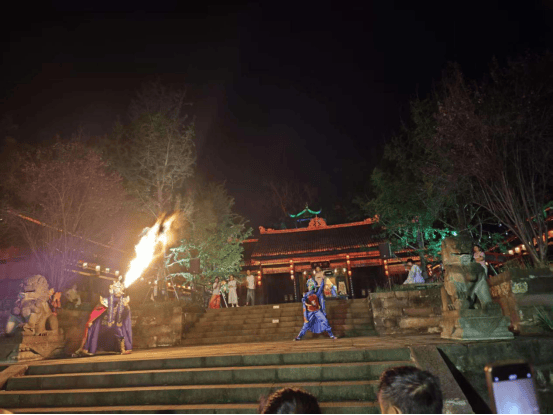 移步武庙,《汉赋风云会》正演到酣处。演员化身司马相如与卓文君,汉赋的华美辞藻在烛火下流转。席间有观众答对了互动题目,风里都仿佛带着汉代文人的风雅。那一刻,我忽然觉得,文字的力量可以跨越时空。