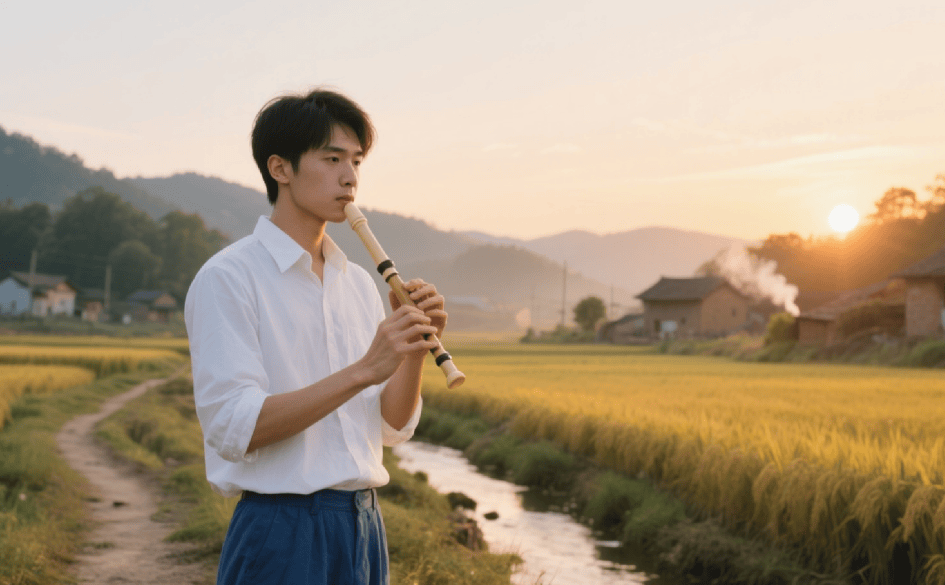 这期间,最盼大表哥白茹来我家,他是我爸的徒弟,跟着学砌匠。我感觉他就是“学富五车”的那种秀才,肚子里的故事特别多,甚至比招公讲得还好。最难忘的是白茹哥的笛子演奏,什么《城南旧事》里的《送别》《九九艳阳天》《映山红》和电影《少林寺》插曲《牧羊女》等。人说音乐人生,这是在村庄里唯一能打动我心弦、使我充满神秘幻想的东西,给我的生活带来了不一样的感受。