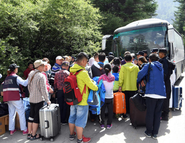 “我们在疏散工作中坚持的原则是,首先保证在当地没有继续生活能力的人离开,然后再组织其他需要撤离的群众离开。”九寨沟县旅游发展局副局长蔡宏说,“在交通上,先满足自驾游游客离开,再组织客运车辆运送游客。”