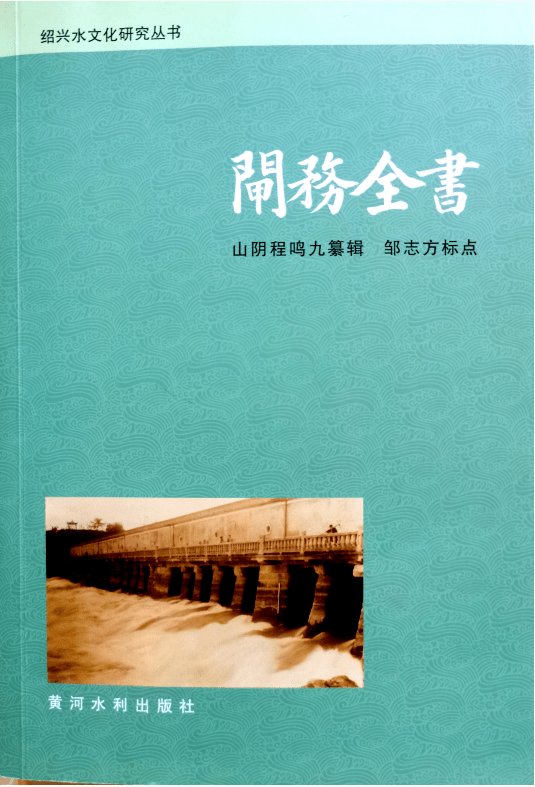 然而,在这些水利要籍中,最具代表性的却要推清康熙年间由程鸣九纂辑的《三江闸务全书》《三江闸务全书续刻》。这两种书,系古越郡治水研究和记录的权威,堪称稀籍。为古为今用,绍兴有关部门将其合并整理,于2013年由黄河水利版社出版,书名为《闸务全书》,202千字,署名为程鸣九纂辑、邹志方标点、冯建荣主编。该书中的若干信息,既是记录三江闸的重要依据,又是转化为开发拓展三江闸文旅产业的支撑之一,还是三江闸“申遗”的学术支撑。