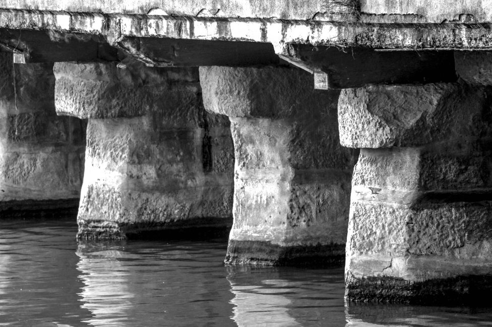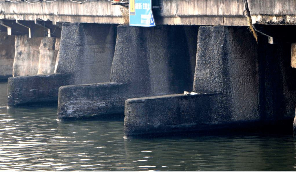 上图:三江闸遗存:闸墩(部分);下图:闸遗存:梭子闸墩(部分)。在没有起重机的明代,怎么把这些重石砌上去?实在难以想象