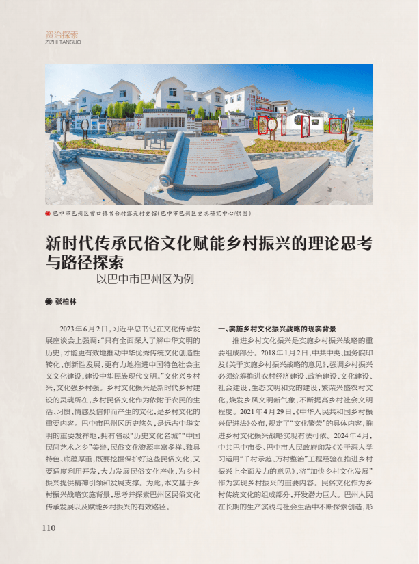【资治】新时代传承民俗文化赋能乡村振兴的理论思考与路径探索——以巴中市巴州区为例