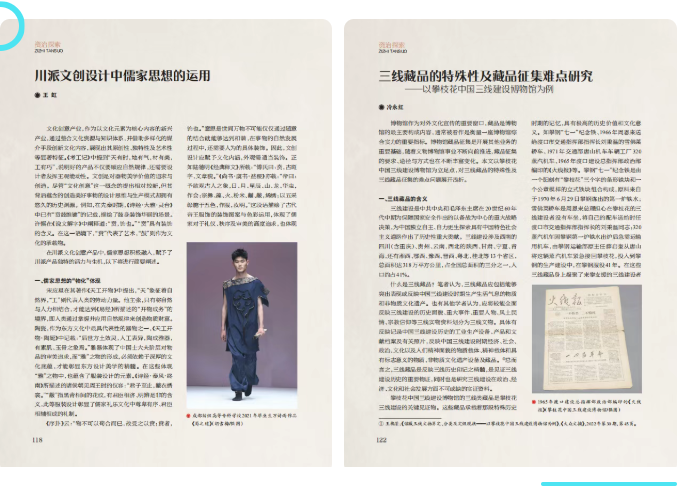 “资治探索”栏目刊发《川派文创设计中儒家思想的运用》《三线藏品的特殊性及藏品征集难点研究——以攀枝花中国三线建设博物馆为例》2篇文章。前文以川派文化创意产品为研究对象,深入探讨儒家思想在其中的融入路径、具体体现及价值意义,旨在揭示传统文化与现代文创设计的融合逻辑,为川派文创的文化内涵提升与创新发展提供理论支撑。后文以攀枝花中国三线建设博物馆为核心案例,围绕三线藏品的含义、特性、征集难点及解决建议展开系统分析,并就三线建设主题博物馆的藏品征集工作提出参考建议,进而助力三线文化传承与三线精神弘扬。