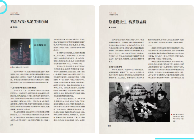 “方志与我”栏目刊发《方志与我:从笔尖到心间》《悠悠逢此生情系修志缘》《深耕方志润巴蜀匠心融墨写春秋——为四川省地方志工作办公室点赞》3篇文章。85岁的作者陈世松,以自身经历串联起与地方志的深厚渊源,围绕与地方志的结缘历程展开,从初识时的认知转变,到入门时的实践成长,再到深耕时的修志突破,聚焦关键经历与情感变化,凸显方志情怀的深化以及方志人坚守、担当、奉献的精神;李长清以75年人生阅历,书写了与新津地方志绵延数十年的深厚缘分,其修志经历不仅是个人成长的轨迹,更折射出基层方志工作者的坚守与担当;后文从读者的视角看待和点评四川地方志工作。