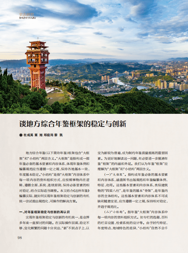 【志鉴研究】谈地方综合年鉴框架的稳定与创新‖杜成英 粟旭 郑庭筠 黎凯