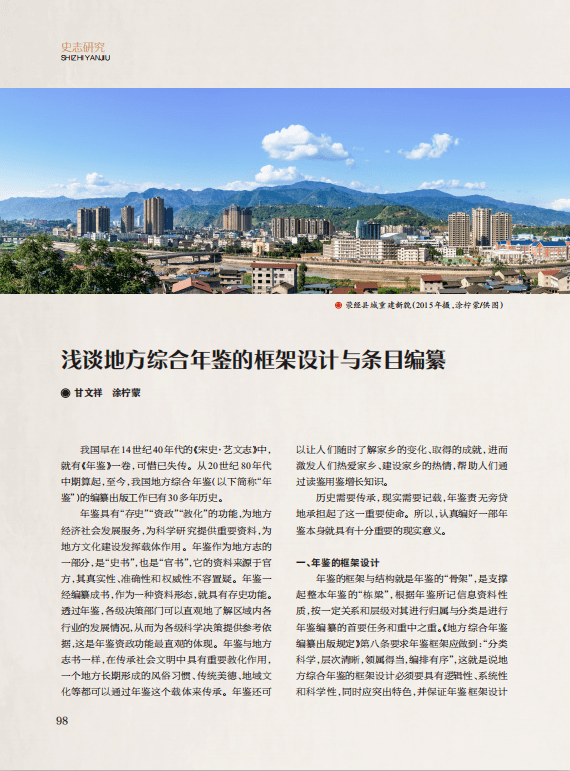 【志鉴编纂】浅谈地方综合年鉴的框架设计与条目编纂‖甘文祥 涂柠蒙