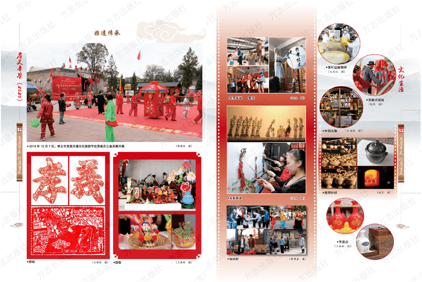 七是围绕地方特色人文历史、自然风貌选题。一个城市经过历史的沉淀,必然能形成独有的历史、经济、人文、自然等特点,围绕此方面选题,编纂人员要找准地方特色定位,深入挖掘,运用图片生动地展示出来。例如《连云港年鉴(2019)》的“山海港城”图片专题展现了连云港市独特的海港城市面貌和自然风光。《孝义年鉴(2020)》“非遗传承”图片专题则透露出孝义市深厚的文化底蕴和非遗传承。