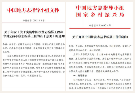 中国脱贫攻坚的创举,不仅破解了人类社会发展的难题,更是拓展了发展中国家走向现代化的途径,为人类对更好的社会制度的探索提供了中国方案。党的十八大提出具有中国特色、符合中国实际的“精准扶贫、精准脱贫”基本方略,以中国式现代化推进中华民族伟大复兴。为忠实记录新中国扶贫历程,起到志书“存史、育人、资政”的功能,2023年3月8日,中国地方志指导小组与国家乡村振兴局共同印发《关于开展中国扶贫志丛书编纂工作的通知》(以下简称《通知》),计划于2025年年底前出版56部志书,以中国扶贫志丛书的形式展现中国共产党团结带领人民消除贫困的历史进程,展现人民生活质量及经济社会发展发生的质的飞跃,展现在这场脱贫攻坚战中所创造出的中国样本,为全球尤其是同样面对贫困挑战的其他发展中国家提供可借鉴的经验。