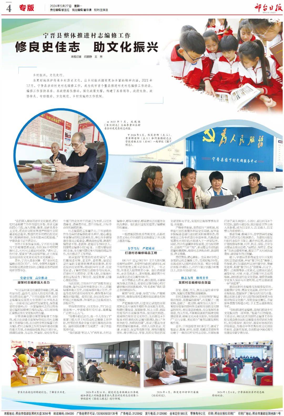 坚持党的领导、自主筹办、开门办志质效统一,宁晋编修村史村志,凝聚起广泛的人心人气。