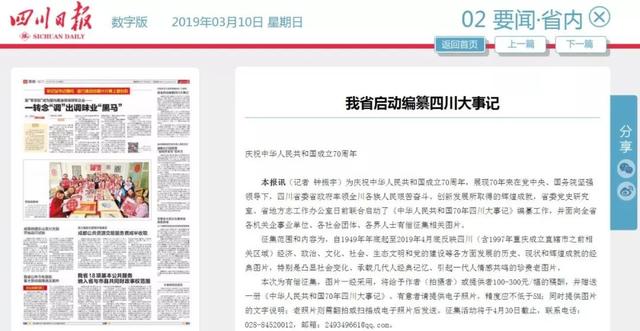 2019年3月10日,《四川日报》第2版报道:我省启动编纂四川大事记