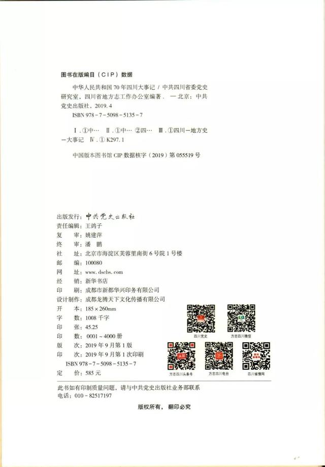 《中华人民共和国70年四川大事记》版权页
