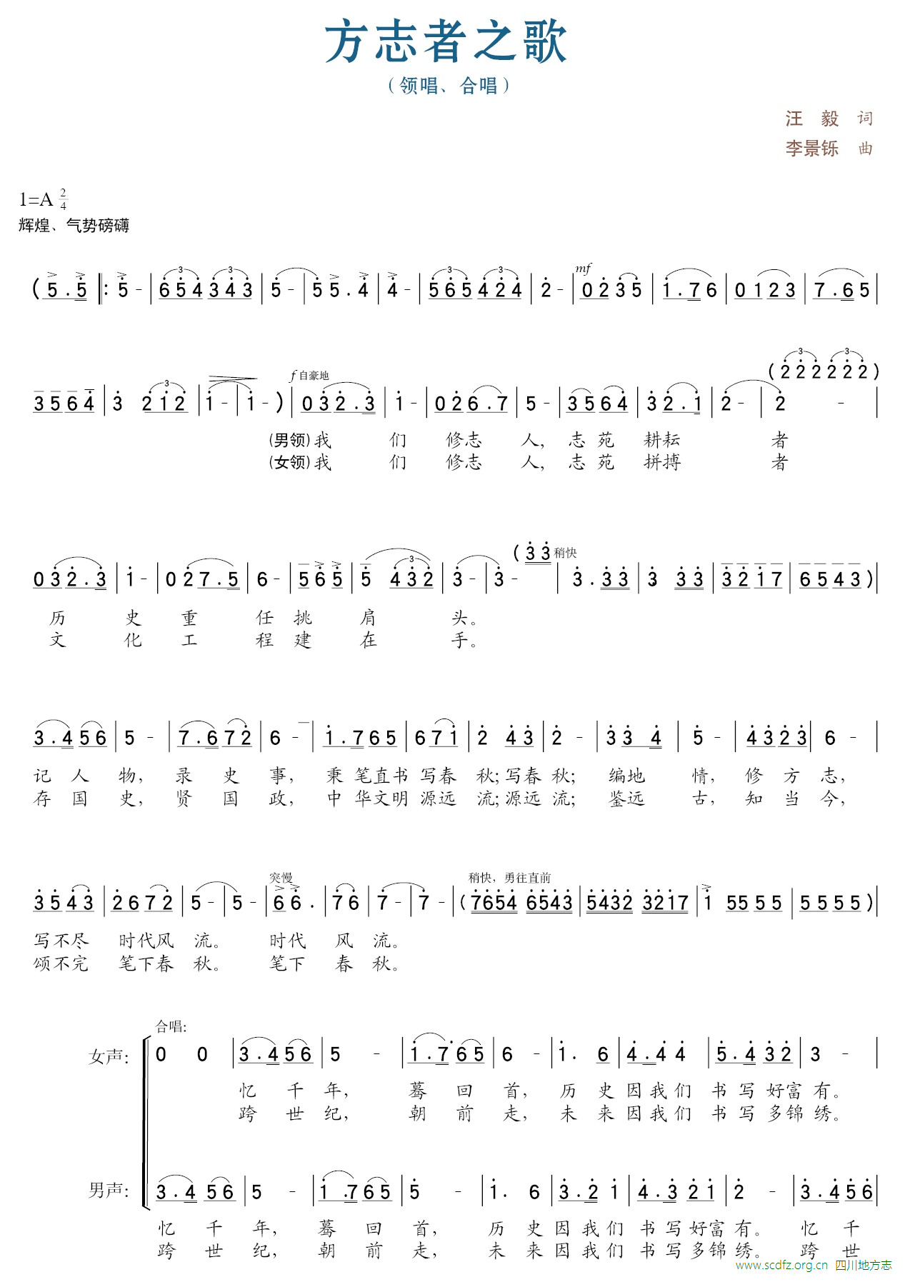 汪毅 李景铄《方志者之歌》 作者:汪毅 李景铄 来源:《四川方志艺苑》 发布时间:2017-02-23 17:27:00 浏览次数: 次 【字体:小 大】 来源: 《四川方志艺苑》 分享到: 关闭本页 【打印正文】