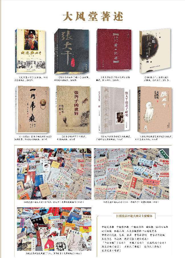至于我对张大千和大风堂艺术的研究,特别是对张大千的研究,时间长达30余年,出版有8本著述(详见封三和《汪毅:我与大风堂》,上海张大千研究会编,2020年),《人民日报海外版》《光明日报》《文汇读书报》《海峡两岸》《读书人》(香港)有评论达60余篇。这些研究,对于如何编纂志书中的《人物志》不乏参考价值。鉴于这一部分内容已构成相对独立的体系,故本书未作涉及。值得一提的是,在《方志馆建设》辑中,记录了我对国家方志馆与市级方志馆建设和策展的一些体会。这些体会,虽说不上系统,但却是我从事地方志工作20年的重要收获之一。它激活了我的方志文化思维,体现了我对地方志表达从平面(书)到立体(馆)的转型。其过程体验,诚如陆游《示子遹》中说“汝果欲学诗,功夫在诗外。”在该辑中,除《“汪毅文献特藏馆”特色与“馆中馆群”联袂打造的思考》一文之外,还有《“汪毅捐赠张大千专题馆”设计大纲》。