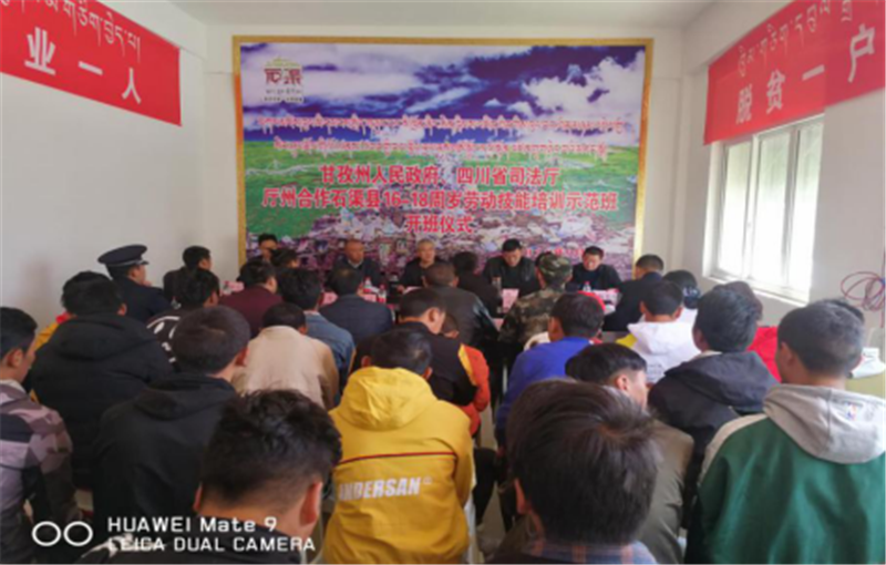 9月1日上午,甘孜州人民政府、四川省司法厅厅州合作石渠县16-18周岁劳动技能培训班,正式开班,出席此次开班仪式的有:州人社局副局长谷云、州司法局副局长扎西彭措、州教育体育局政策法科科长罗信强、县人民政府副县长降村、县人社局局长杨德强及县“控辍保学”领导小组成员单位相关人员。