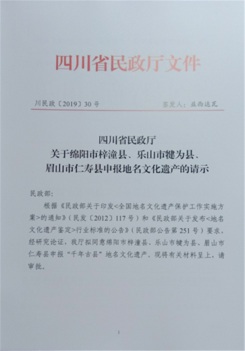 为了加强地名文化遗产保护,充分发挥地名文化遗产在地方经济社会建设中的促进作用,犍为县地方志办公室协同民政部门,以犍为县人民政府名义向国家民政部申报“千年古县”项目。