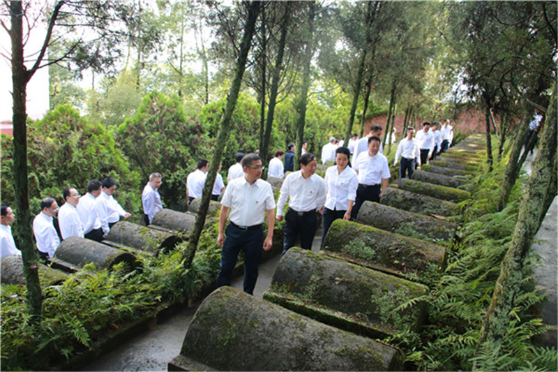 在雄壮的国歌声中,参加现场教学的党员干部向革命烈士鞠躬、默哀、敬献花篮,面对鲜红的党旗,在县委副书记、县长余斌的领誓下,全体党员重温入党誓词。随后,党员干部来到革命烈士墓前,瞻仰革命烈士墓碑,寄托对革命先烈的无限哀思。