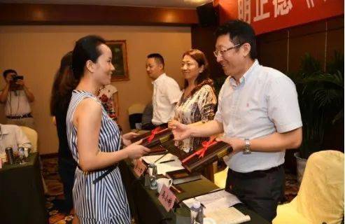 2016年7月20日,蓬安县召开明正德《蓬州志》点校发行座谈会。图为四川省地方志办主任马小彬(右一)向参会人员赠送《蓬州志》