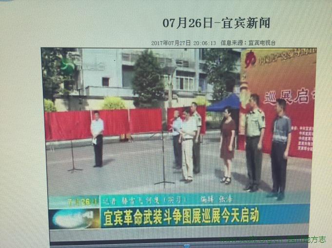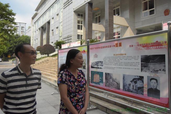 为纪念中国人民解放军建军90周年,从2017年7月26日至8月18日,宜宾市在宜宾主城区及全市8县2区举行了“中国共产党领导的宜宾革命武装斗争图展”巡展活动。图展集中宣传展示了党领导的宜宾革命武装斗争历史,包括“星火——中共宜宾特支的建立”“怒潮——党领导的农民抗捐抗税斗争”“先驱——三大起义中的宜宾人”“暴动——党领导的宜宾农民武装起义”“征战——党领导的早期游击战争”“足迹——中央红军过宜宾”“壮哥——红军游击纵队在宜宾”“烽火——党领导的抗日队伍中的宜宾人”“前夜——解放前夕宜宾党组织领导的武装队伍”“解放——国民党72军起义,宜宾和平解放”等11个部分。配合图展,还在巡展活动中开展《中国共产党领导的宜宾革命武装斗争图册》现场赠书活动。