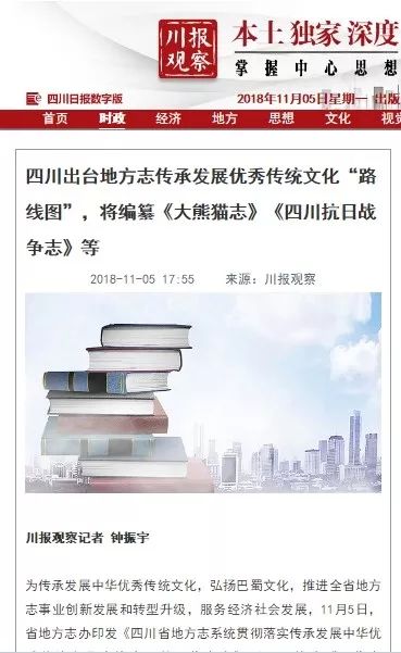 【川报观察】四川出台地方志传承发展优秀传统文化“路线图”,将编纂《大熊猫志》《四川抗日战争志》等