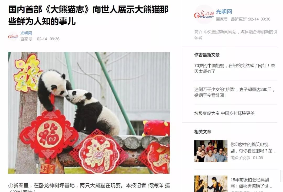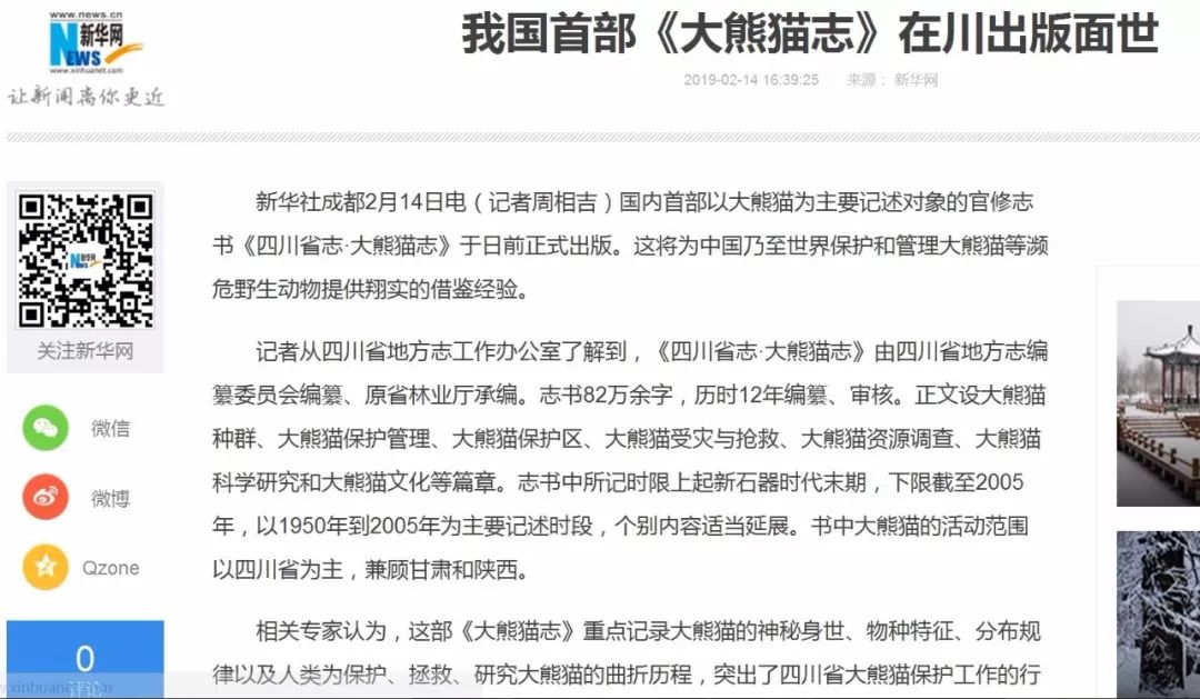 2月14日新华社报道:我国首部《大熊猫志》在川出版面世