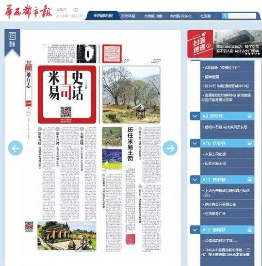 2018年11月22日,《华西都市报》第10版刊发2017.1.19日四川地方志网发布的《米易土司史话》(作者:文章,作者单位:米易县地方志办公室)。