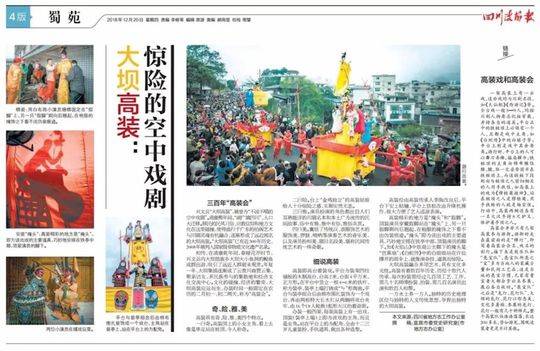2018年12月20日,《四川政协报》第4版“蜀苑”栏目全文刊发2018年10月26日“方志四川”微信公众号发布的《大坝高装: 惊险的空中戏剧》(撰稿:宜宾市地方志办公室)。
