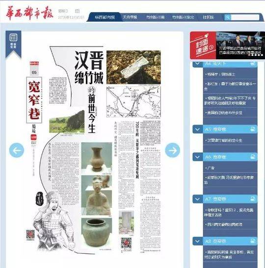 2018年12月2日,《华西都市报》第5版刊发“四川地方志”网2018.3.6日发布的文章《汉晋绵竹城的前世今生》(作者:任运成 胡凤斌 ,载《巴蜀史志》2017年第5期)