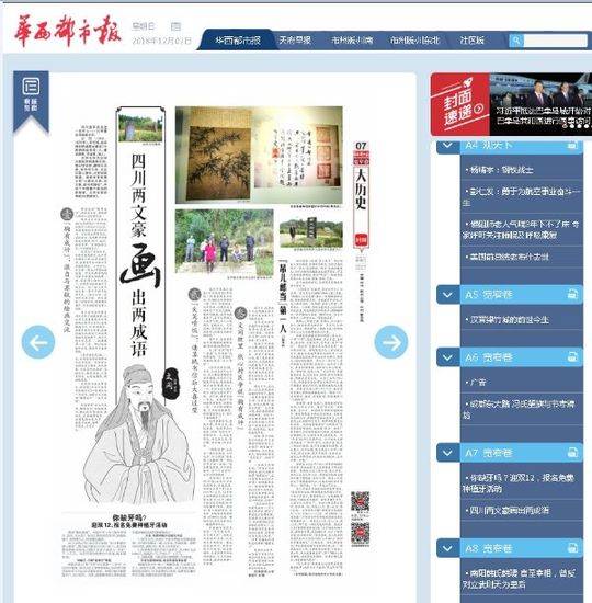 2018年11月4日,《华西都市报》第7版刊发“方志四川”2018.9.30日发布的文章《北宋“灰姑娘”章献皇后刘娥》(作者:葛丽平,作者单位:成都市双流区委史志办公室)和2018.10.31日发布的《四川巴中张思训:世界第一台自动天象仪创制者》(撰稿:巴中市恩阳区委史志档案局)