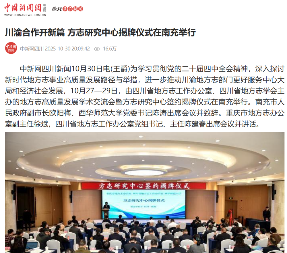 【中新网四川】川渝合作开新篇 方志研究中心揭牌仪式在南充举行