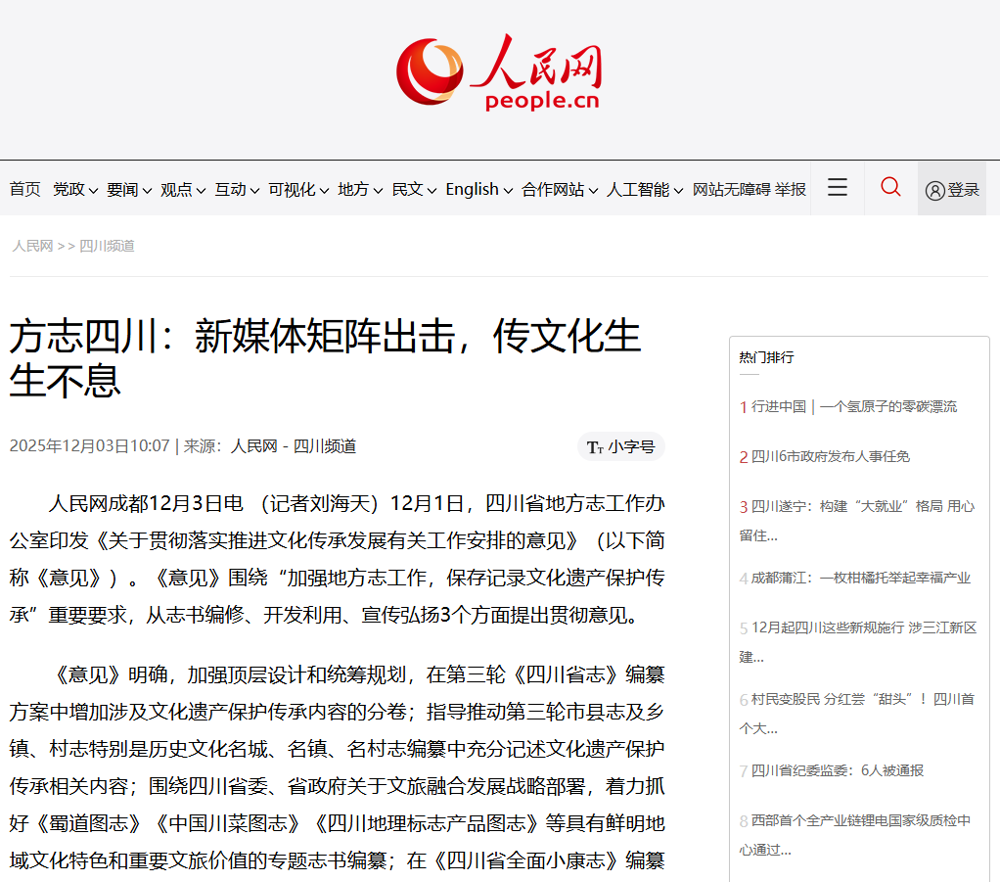 【人民网-四川频道】方志四川:新媒体矩阵出击,传文化生生不息