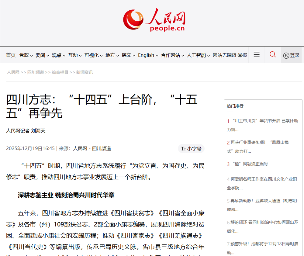 【人民网-四川频道】四川方志:“十四五”上台阶,“十五五”再争先
