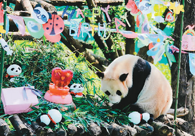 8月12日,四川省广安市庆祝大熊猫淘淘13岁生日和华蓥山大熊猫野化放归培训基地成立5周年。