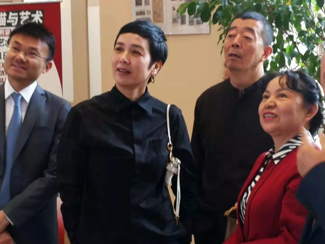 巴黎当地时间2019年9月5日,四川省林业和草原局副局长包建华(右一)与导演顾长卫(右二)、演员蒋雯丽(左二)等在法国国家历史自然博物馆参观“大熊猫走向世界150周年历史文化展”(包建华 供图)