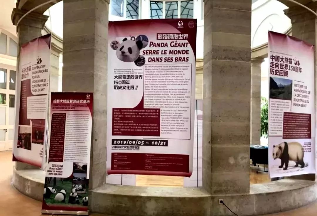 法国当地时间2019年9月5日,由四川省林业和草原局指导,成都大熊猫繁育研究基地、法国国家自然历史博物馆共同主办,法国欧倍欧(OBEO)成都公司、央视网熊猫频道等机构支持的“熊猫拥抱世界”——大熊猫走向世界150周年历史文化展在法国国家自然历史博物馆开幕。四川省林业和草原局副局长包建华参加开幕式,并代表四川省向法国国家自然历史博物馆主席大卫·布鲁诺先生赠送了四川省地方志工作办公室、四川省林业和草原局联合编著的《大熊猫图志》(中英文版)。此次大熊猫历史文化展和赠书活动,推动了四川“三九大”大熊猫文化旅游品牌打造,增进了中法两国人民的友谊。