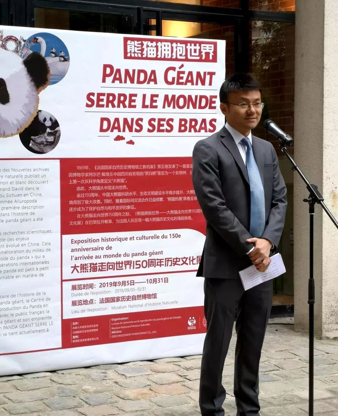 巴黎当地时间2019年9月5日,四川省林业和草原局副局长包建华出席“大熊猫走向世界150周年历史文化展”并致辞(包建华 供图)
