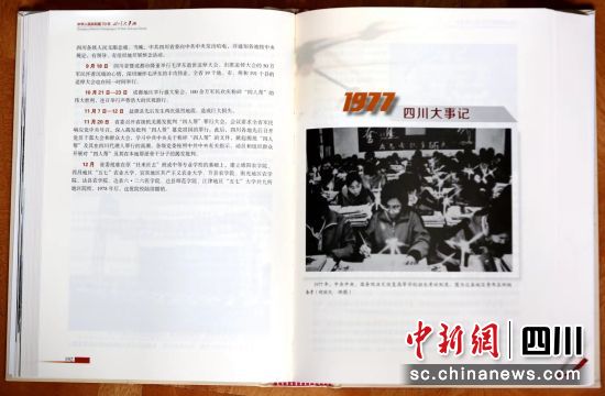 中新网四川新闻9月20日电 (严易梦 王爵)记者20日从四川省地方志工作办公室获悉,为庆祝中华人民共和国成立70周年,由中共四川省委党史研究室、四川省地方志工作办公室联合编纂的《中华人民共和国70年四川大事记》(以下简称《大事记》),近日由中共党史出版社公开出版发行。