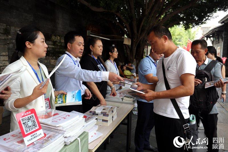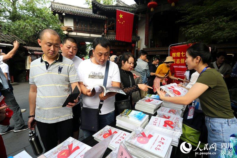 2019年9月28日,锦里,游客踊跃领取图书。(图片由四川省地方志工作办提供)