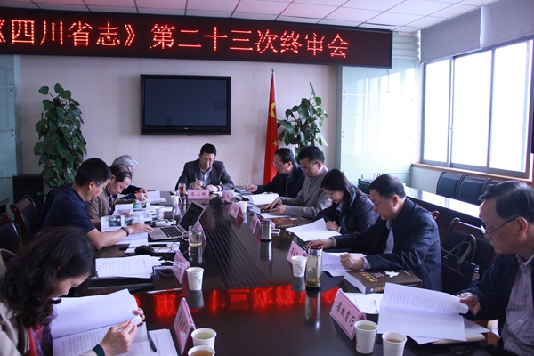 2015年4月23日上午,《四川省志》审核委员会第二十三次终审会议在省志编委会议室举行。省志编委党组书记、副主任、《四川省志》总编、《四川省志》审核委员会成员马小彬主持会议。省民宗委、省保密局、省统计局、省志编委、省社科院、四川大学等单位《四川省志》审核委员会成员及特邀委员参会。