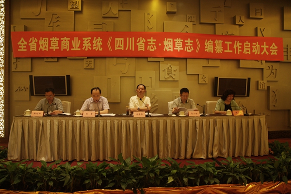 2015年7月3日上午,《四川省志·烟草志(1986—2005)》(下简称《烟草志》)编纂工作启动大会在望江宾馆召开。省志编委党组书记、副主任、《四川省志》总编马小彬,省烟草专卖局(公司)局长、总经理、党组书记李恩华,省烟草专卖局(公司)副局长陈章,省烟草专卖局(公司)副巡视员商波等100余人参会,会议由李恩华局长主持。