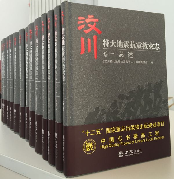 5·12汶川特大地震发生后,为弘扬伟大的抗震救灾精神,总结抗震救灾和灾后恢复重建经验,提高各级政府的应急管理能力,国务院和四川省分别于2008年11月和2009年4月启动了汶川特大地震抗震救灾志编纂工作。经过8年的艰苦努力,截至2016年5月,国家层面组织实施的《汶川特大地震抗震救灾志》共11卷13册、约1400万字出版发行,四川省组织实施的《汶川特大地震四川抗震救灾志》8个分卷1000万字全部进入终审后的补充完善和出版阶段。