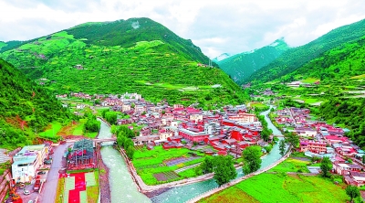 改革开放以来特别是党的十八大以来,我们党领导人民进行伟大社会革命,领导人民决胜全面建成小康社会。图为中国工农红军“两河口会议”会址所在地——四川省小金县两河口镇,昔日革命老区如今换新颜。新华社发