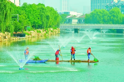 新时代践行“绿水青山就是金山银山”理念,关键在抓落实。图为在浙江省长兴县煤山镇合溪北涧,当地党员志愿者正在和河长一起巡河治河。吴拯摄/光明图片