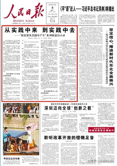从改革开放的“桥头堡”深圳开始,到“世界大同,和合共生”的人类命运共同体收尾,一步步阐明了习近平新时代中国特色社会主义思想的实践基础。今天小组推荐《人民日报》头版头条文章《从实践中来,到实践中去》,为组员解读这个系列报道。