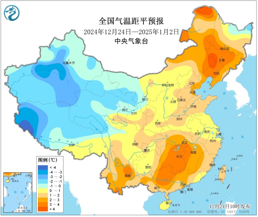 据中央气象台预报,今日至2025年1月2日,全国大部地区降水偏少,西南地区累计降水量为1~5毫米,四川平均气温较常年同期偏高。