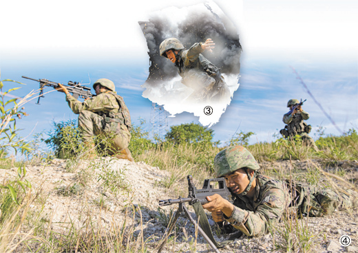 图①:“平型关大战突击连”正在组织协同训练。 |