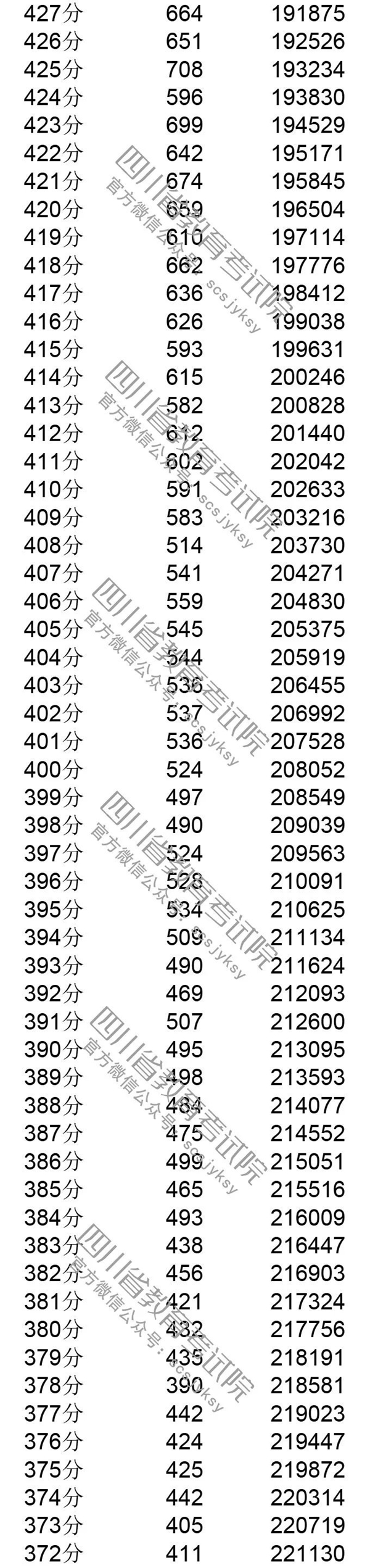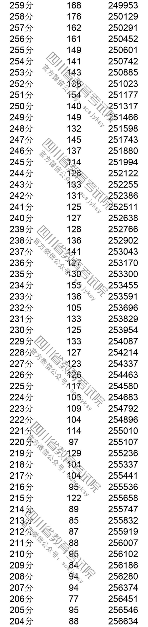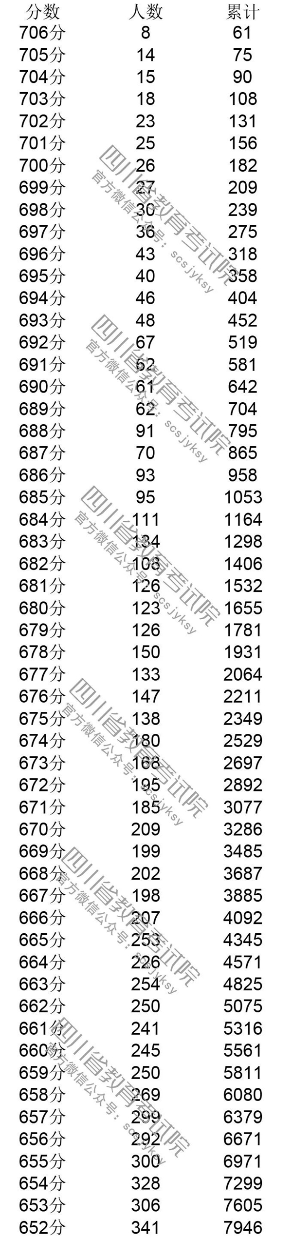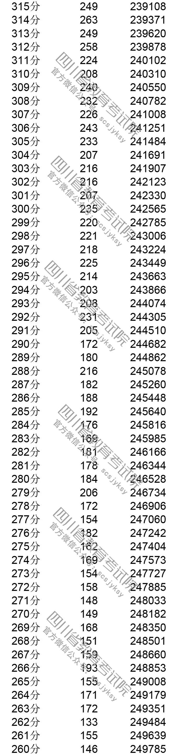 官方发布!四川省2019年普通高考理科成绩分段统计表出炉! 来源:四川教育考试院 发布时间:2019-06-23 09:03:49 浏览次数: 次 【字体:小 大】 注:100分以下略。 来源: 四川教育考试院 终审:何晓波 分享到: 关闭本页 【打印正文】