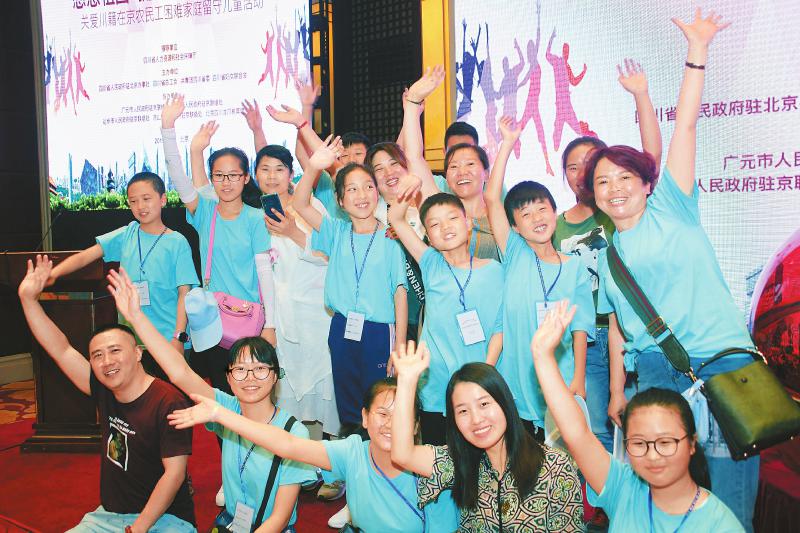 四川日报报北京7月22日电(记者 刘春华/文郝飞/图)7月22日,“感恩祖国、拥抱北京、亲情相聚”——关爱川籍在京农民工困难家庭留守儿童活动在北京启动。来自凉山、广元、遂宁、达州等地的108名留守儿童欢聚首都北京,与在京务工的父母团聚。